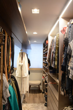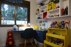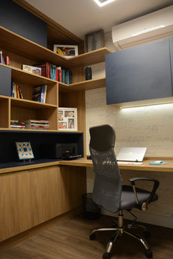 Este apartamento de 2° andar possuía 2 pátios privativos: um social, onde foi instalado deck com spa, e outro de serviço, que foi totalmente extinto. O antigo morador já havia coberto o segundo pátio, o que nos motivou a tirar melhor proveito deste espaço: a lavanderia foi deslocada pra junto da nova fachada fundos; a cozinha foi ampliada, possibilitando a criação de uma área de copa e adega no acesso à mesma; a sala de estar/jantar ficou mais espaçosa e, inclusive, a suíte do casal ganhou um closet! Além de todas estas melhorias, os proprietários aproveitaram a obra para colocar uma lareira na sala e reformar todo o banho do casal, que ganhou um tampo de cuba esculpida com monocomandos individuais. Quanto à decoração, havia inicialmente um receio em deixar tudo muito sóbrio ou bege/ cinza, mas aos poucos os clientes foram se permitindo e os ambientes foram ganhando cores e muita vida.