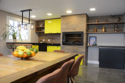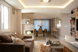 A família possuía este terreno com 2 casas térreas conjugadas para locação até que a matriarca da família, já viúva, resolveu sair do seu apartamento e reformar estes imóveis pra ir morar com uma sobrinha. As construções originais não eram reforçadas para receber um segundo pavimento e possuíam cômodos pequenos e mal iluminados. Como não havia a intenção de demolir tudo e começar um projeto todo novo, o grande desafio desta reforma foi reorganizar o pavimento térreo: paredes internas foram removidas, vigas de ferro instaladas, uma escada de concreto para acesso ao 2° andar foi projetada e os quartos que existiam originalmente nos fundos do terreno foram totalmente demolidos, a fim de trazer mais iluminação natural pros ambientes sociais e de serviço. Os dormitórios foram transferidos pro 2° pavimento, o qual contou com paredes internas em gesso acartonado e telhado com estrutura de ferro para que esta parte nova da construção não pesasse muito sobre a pré-existente. Detalhes de fachadas originais foram mantidos, como o detalhe em pedra natural e os gradis nas janelas dos térreos.